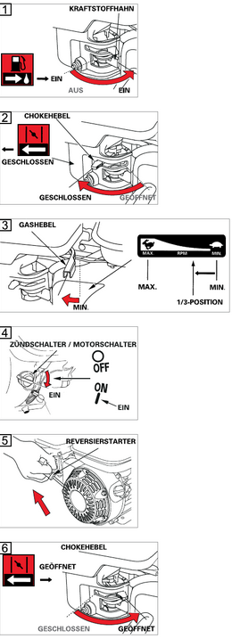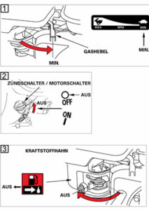 1. Páku plynu na motoru otočte do polohy MIN. Set (nečinný).