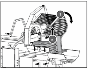 • Otevřete ochrannou mřížku pro řetězovou pilu a štípačku pomocí funkce