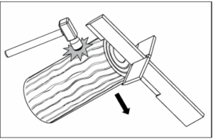 5. Poklepáním na kazetu s papírovým filtrem na tvrdém povrchu