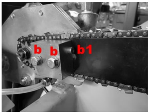 • Nyní otočte imbusovým šroubem (b1) doleva, aby se řetěz